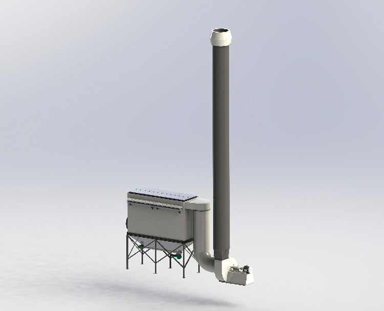 目前很多行業都存在粉狀物料卸裝作業,由于物料在搬運和儲存過程中均存在揚塵現象。本設備除塵效果好,整體設備構造緊湊,占地面積小,操作與控制方便。其特殊之處是設有集塵箱的箱體,箱體上設有進料口,下方設有錐形儲料倉,上方采用脈沖除塵,當粉狀物料由于風力作用進入除塵器時,捕集細小、干燥、非纖維性粉塵。濾袋采用紡織的濾布或非紡織的氈制成,利用纖維織物的過濾作用對含塵氣體進行過濾,當含塵氣體進入布袋除塵器,顆粒大、比重大的粉狀物料,由于重力的作用沉降下來,落入儲料斗,含有較細小粉塵的氣體在通過濾料時,粉塵被阻留,使氣體得到凈化。 脈沖布袋除塵器由儲料斗、上箱體、中箱體、下箱體等部分組成,上、中、下箱體為分室結構。